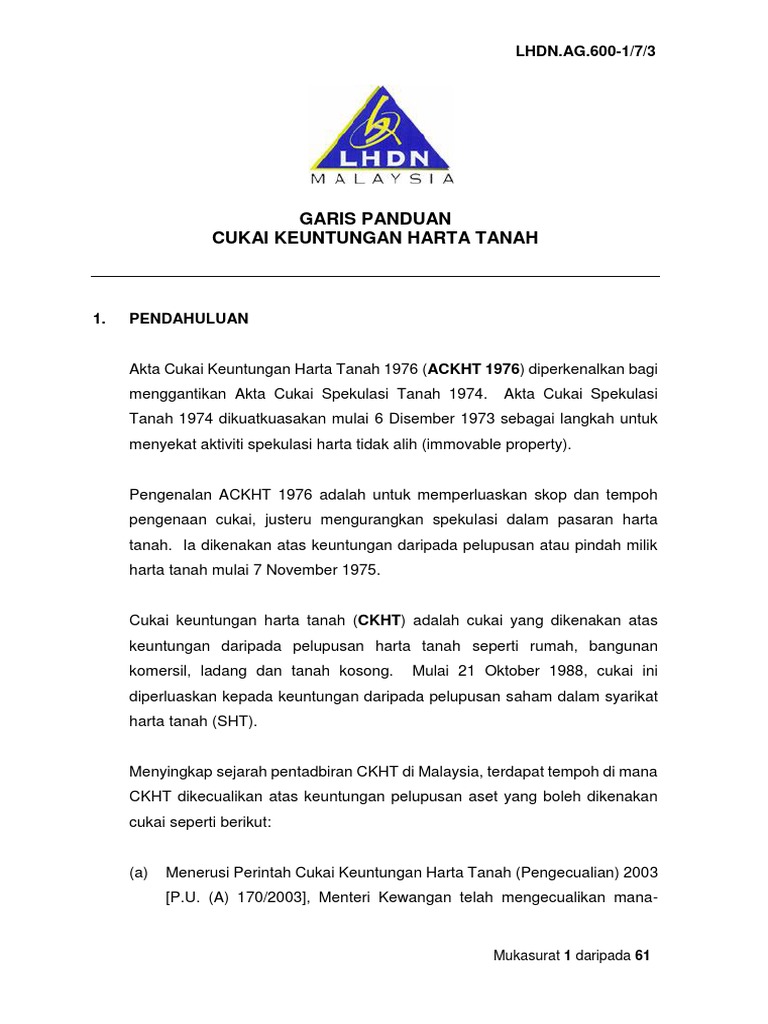 Related : Akta Cukai Keuntungan Harta Tanah 1976 Pdf - Pengecualian CKHT, perkhidmatan mulai 1 Januari 2019 : Cukai keuntungan harta tanah dan akta cukai aktiviti..